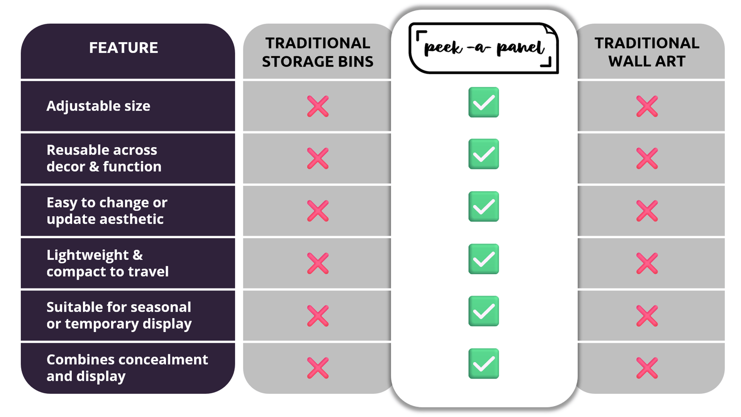 Traditional framing methods are static and inflexible. Peek-a-Panel solves these problems by combining ease of use, configurability and broad material compatibility in a patent-pending design that adapts to your space and your style.